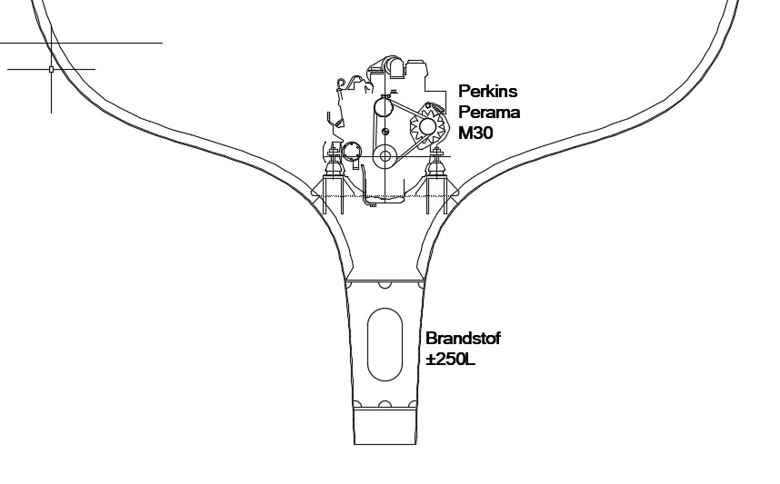 Om te voorkomen dat EMMA straks weer te zwaar is in de kont, gaan we de bijna 300kg wegende 30pk Yanmar vervangen voor een stuk lichtere 140kg Perkins Perama M30. Dit is een tweedehands blok, welke hetzelfde basisblok heeft als de Volvo Penta MD2030 serie. Dit zijn geweldig betrouwbare blokken. Daarnaast is de footprint van dit blok erg vergelijkbaar met de meeste moderne 30pk motorblokken, dus vervangen in de toekomst zal ook probleemloos moeten kunnen.